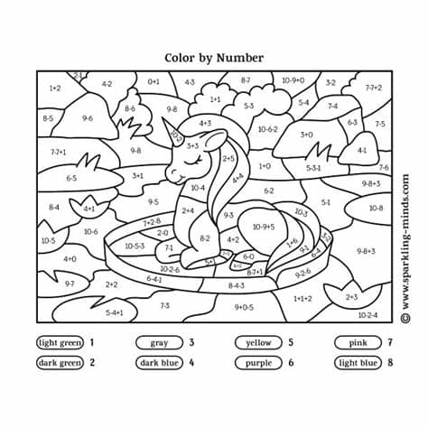 Unicorn Color by Number (Addition and Subtraction) Worksheet - Sparkling Minds
