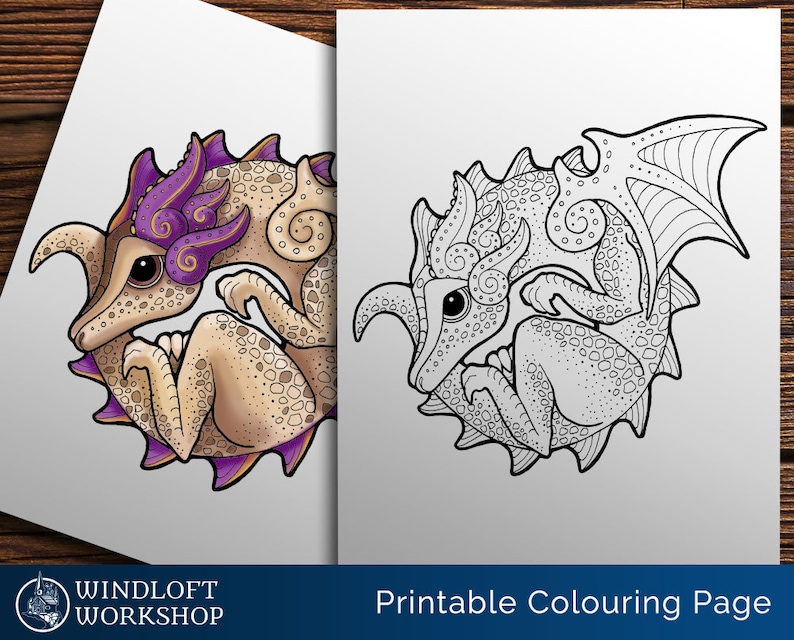 Coiled Dragon Coloring Page Kawaii Dragon Cute Fantasy | Etsy